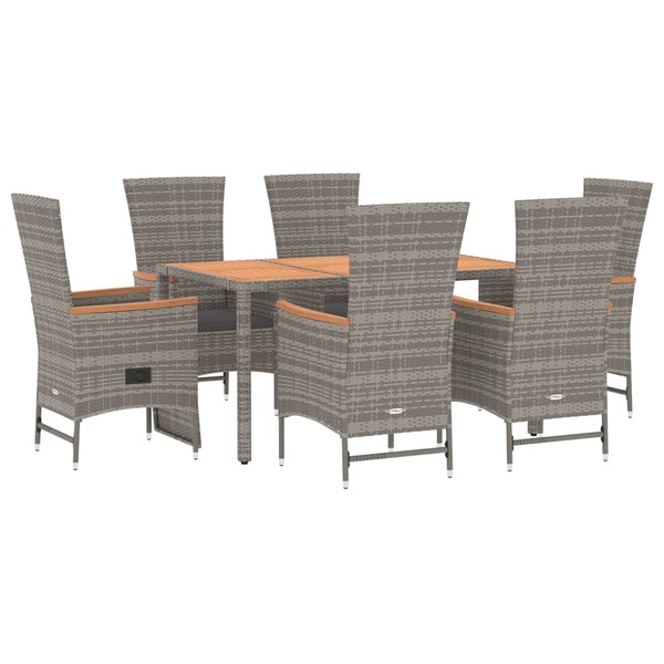 Contemporary Comfort: Grey Poly Rattan 7-Piece Dining Set with Plush Cushions