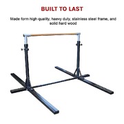 Gymnasts will want this horizontal bar by Randy & Travis Machinery to practice on when they're at home. Easily moved and stored, this horizontal bar will also serve other athletes well as portable equipment on which to perform chin-ups.
