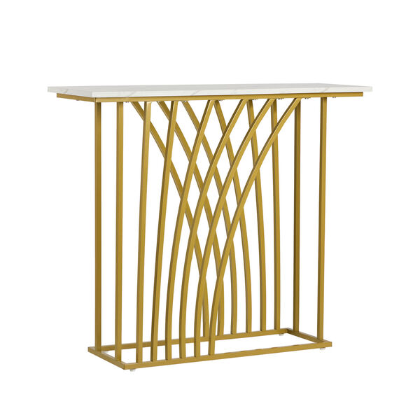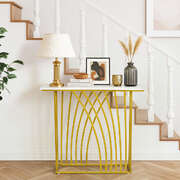 Hallway Console Table Marble Effect White Gold 95x30x81cm Metal Stand