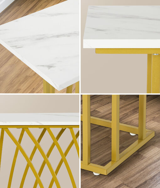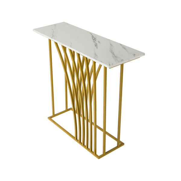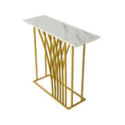 Crafted with high-quality materials with close attention to details, our console table is built to last. The unique curved gold-plated stand - an eye-catching feature that captures immediate attention - provides a solid structure for the console table, while the smooth and marble-like twin tabletop offers a sleek and sophisticated surface for displaying decorative items or everyday essentials. The clean lines and sleek design will complement any decor style with ease. Better still, its presence need not be at just the hallway but in every living space or room that warrants your creativity and imagination.