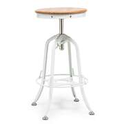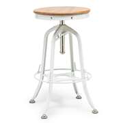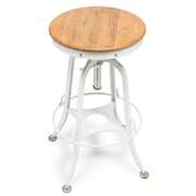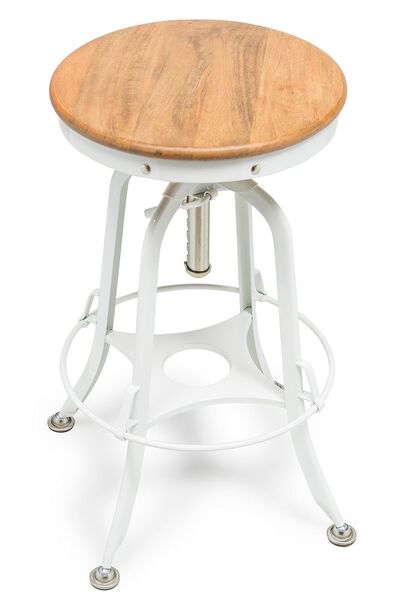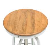 Hamptons Style White Bar Stool - Height Adjustable, Swivel, Natural Wood Top