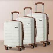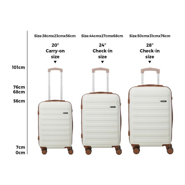 Hardside Carry On Luggage Set Voyager Series ABS Trolley Case 20 24 28 Inch White 3 Piece