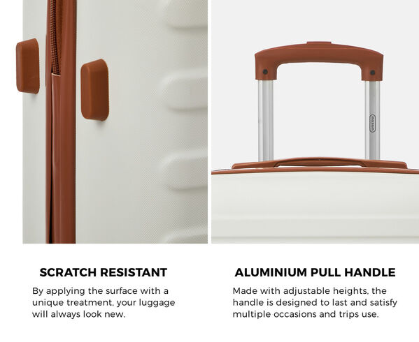 With a hardy and durable ABS outer shell and finished in a choice of colours, the luggage set also features all the luggage must-haves to make your journeys smooth and hassle-free.
