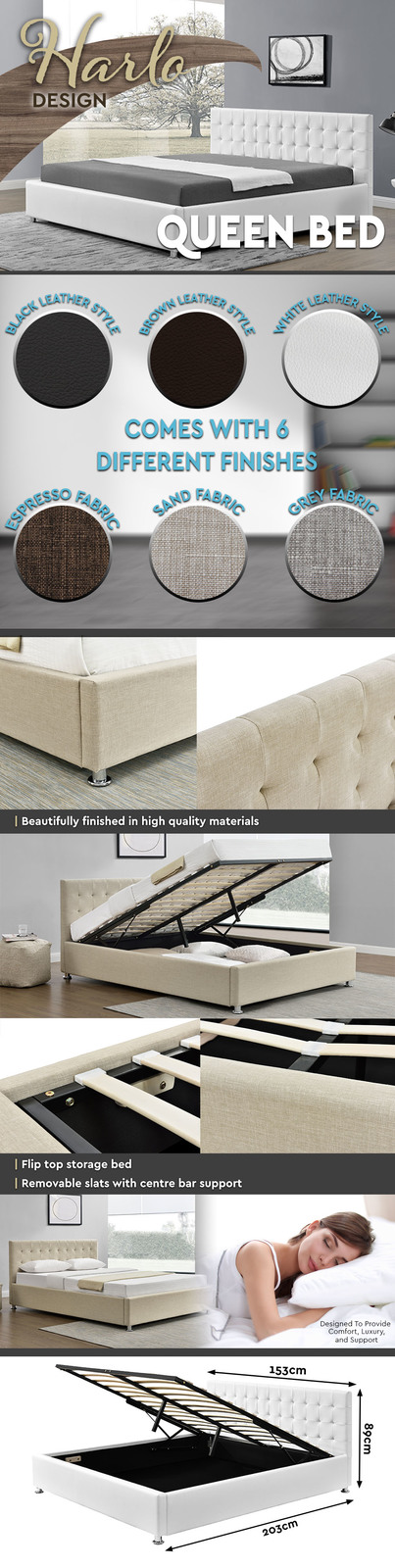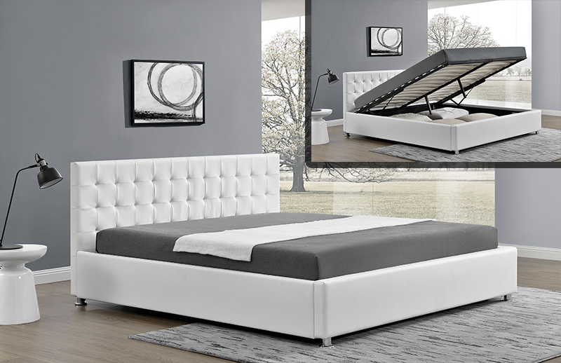 Harlo Queen Size Gas Lift Mat PU Leather White 152 x 203cm