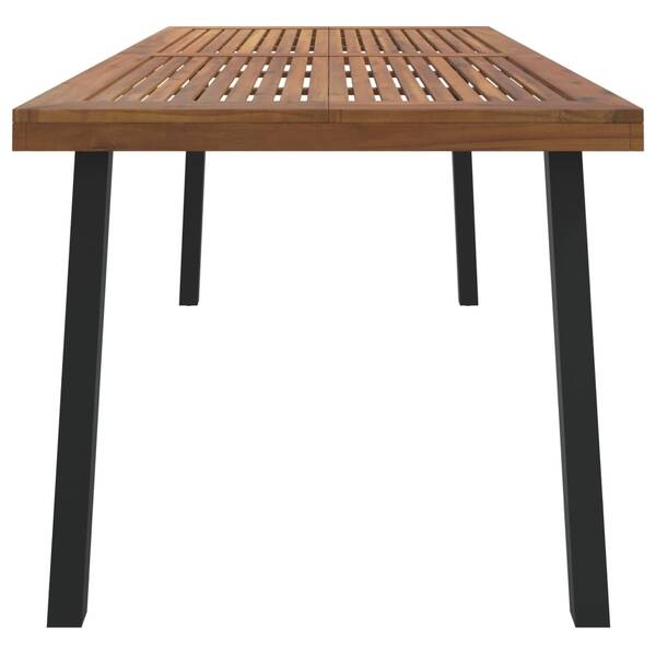 With the garden table, enjoy a nice meal outdoors with your family and friends! Solid acacia wood: Solid acacia wood is a beautiful natural material. Acacia wood is a tropical hardwood, which is dense, sturdy, and durable.Metal legs: The powder-coated metal legs of the outdoor table ensure sturdiness and stability. It also gives the patio table an industrial look.Stable tabletop: The stable tabletop of the garden furniture is ideal for your dishes, drinks and snacks. Note:To make sure your outdoor furniture stays beautiful, we recommend protecting it with a waterproof cover.