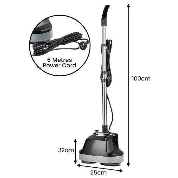 The Hauskeeper Electric Floor Polisher is ideal for maintaining timber, tile and other hard surfaces. It features twin rotating brushes that eliminate the effort required for polishing. Compact for tight areas and around furniture, it suits both home and light commercial use.