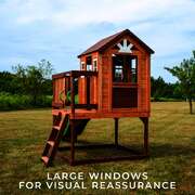 Backyard Discovery introduces their newest playhouse; The Echo Heights. This fun filled elevated playhouse is perfect for any yard size due to its compact design. Young children will love the imaginary play possibilities with a stove top, battery powered appliances and accessories.