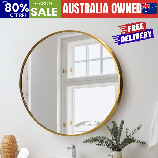 Round Wall Mirror 80cm Gold Frame Modern Bathroom Bedroom Decor Home