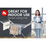 Dry your laundry and towels indoors and cost efficiently with this 230W electric freestanding towel dryer. It's two fold out winged design give plenty of room for your laundry.