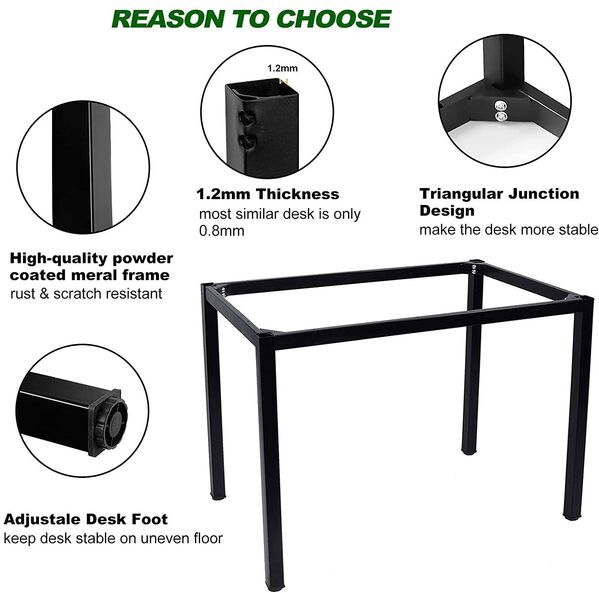 - Main material: This writing table frame is built with high-strength, thick tubing steel that is powder coated for a perfect finish. And the table top surface is 18mm thick, high resistance on scratch & friction.