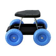Heavy Duty Garden Cart Seat with Wheels Rolling Work Stool Tool Storage Blue/Black