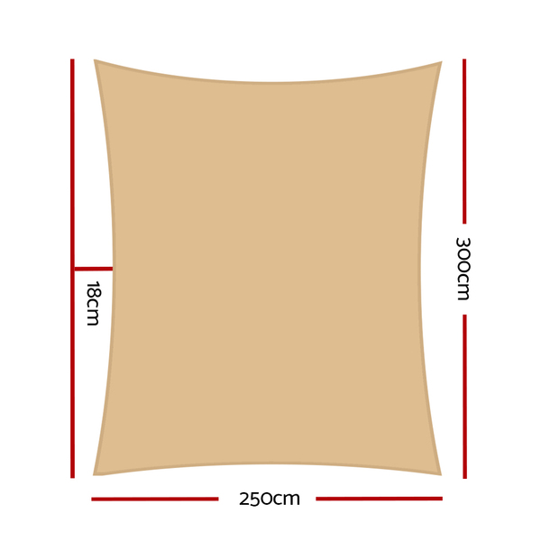 Instahut 2.5 x 3m Rectangle Shade Sail Cloth - Sand Beige