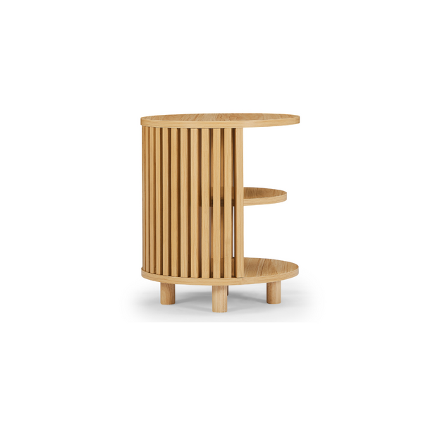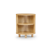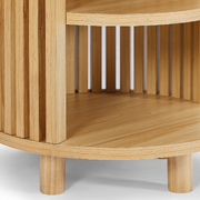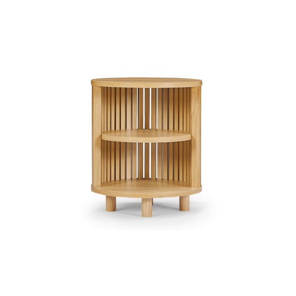 With its discreet slatted side panels and elegant round shape, the Henley bedside table is proof that less is more when it comes to making an impact.