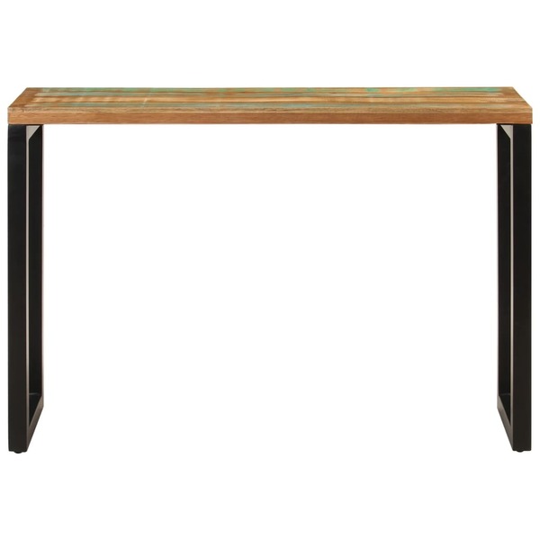 This streamlined console table's versatile design adds style to your entryway, living room, or hallway. Solid reclaimed wood: Solid reclaimed wood consists of reused timbers such as teak, mango wood, pinewood, and beech. These materials are recycled from old buildings such as factories, sheds, and boats. This makes it a very environmentally friendly option in furniture manufacturing. As every piece is handmade and unique colours will vary for each product. You might see some blue, green, and sometimes, orange, red or pink.Sturdy frame: The iron frame of the table ensures sturdiness and stability.Stable top: This hall table features a stable top surface that provides you with the perfect amount of space to highlight your important items, like decorative ornaments, a vase of flowers, framed photos, etc. Good to know:Colours and grains vary per furniture item, making each piece unique. The delivery is random, ensuring the exclusivity and individuality of your product. Warning:To prevent it being overturned, this product must be used with the provided wall attachment device.