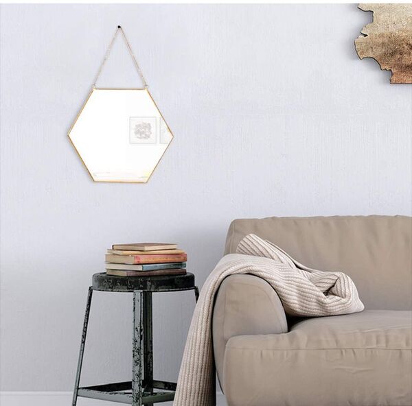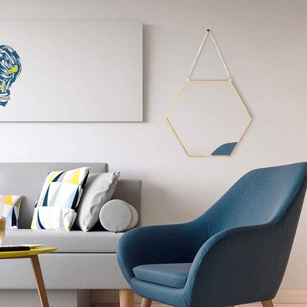 Hexagon Hanging Wall Mirror Decor (Gold Color)