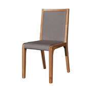 2X Wooden Frame Leatherette In Gray Fabric Dining Chairs With Wooden Legs