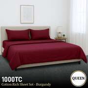 Hill Luxury 4pc Queen Bed Sheet Set 1000 Thread Count Cotton-Rich Burgundy