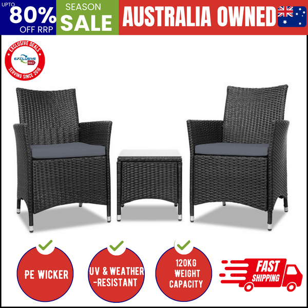 3Pc Bistro Set Outdoor Furniture Rattan Table Chairs Patio Garden Cushion Black