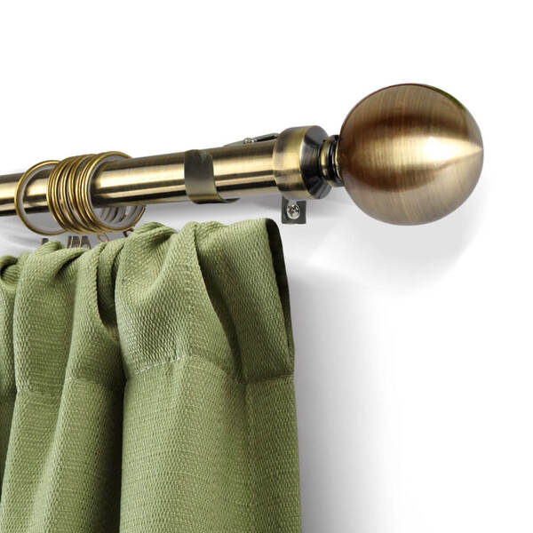 Extendable 190-380cm Metal Curtain Rod with Metal Ball in Brass Colour