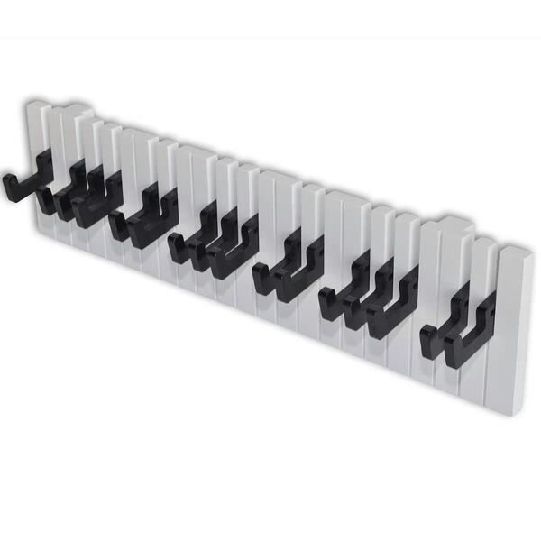 Piano Keyboard Design Wall-mounted Coat Rack with 16 Black Hooks