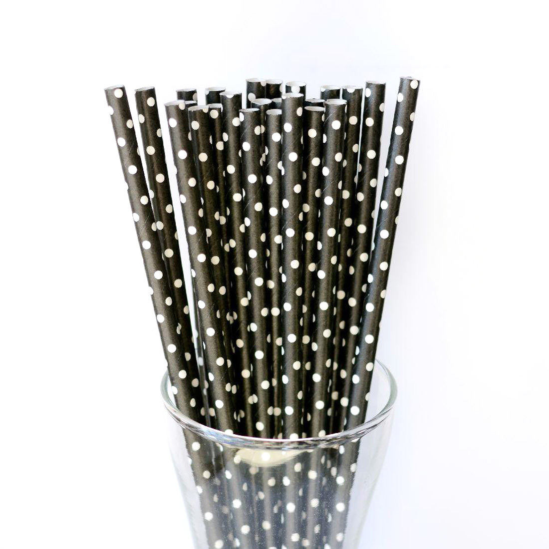 50 x Paper Straws - Black Red & White Polka Dot Set
