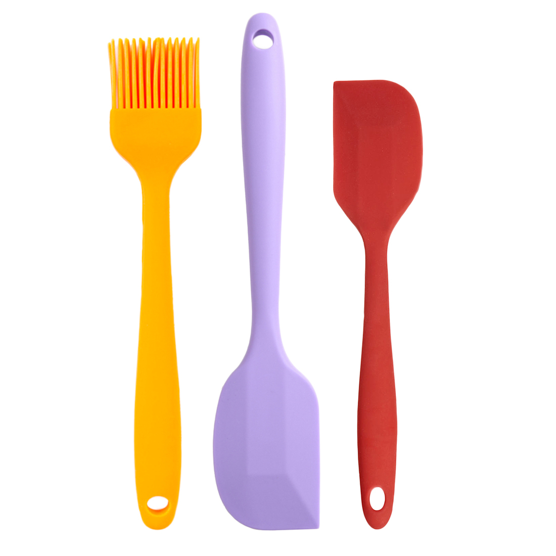 3pc Silicone Baking Set with Spatula Brush & Gloves Random Colour