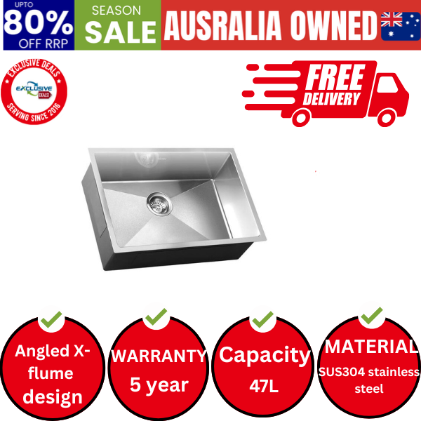 490x440mm Handmade Stainless Steel Kitchen/Laundry Sink with Waste