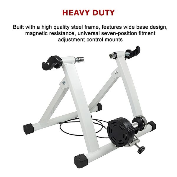 Specifically engineered for indoor fitness and endurance training, the training cycle includes seven magnetic resistance levels and simulates a variety of terrains. No matter what your specific training goal, cycling enthusiasts and cross-training athletes alike will get the work out they need. Your package includes skewer and wheel riser block. The universal seven-position fitment adjustment control mounts to the handlebars of your bike allowing for easy access.