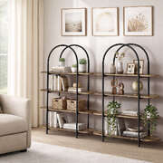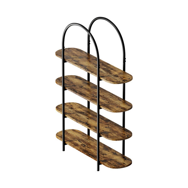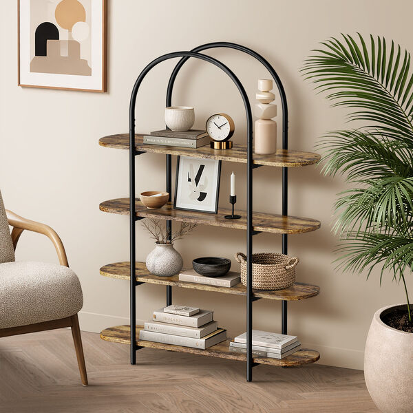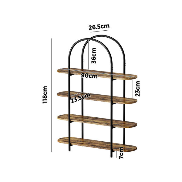 Industrial Display Shelf 4-Tier Home Arched Natural 90x26.5x118cm Particle Board Metal