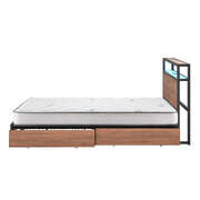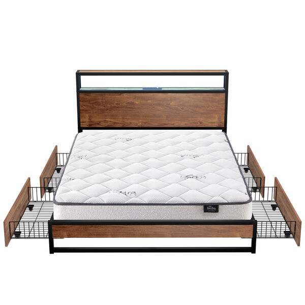 King Bed Frame LED USB Storage Drawers Metal w/ Mattress Industrial