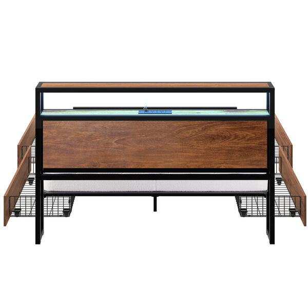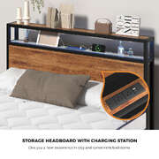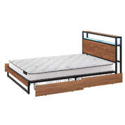 Industrial Metal Bed Frame Queen with LED, 4 Drawers, USB Ports & Mattress 219cm
