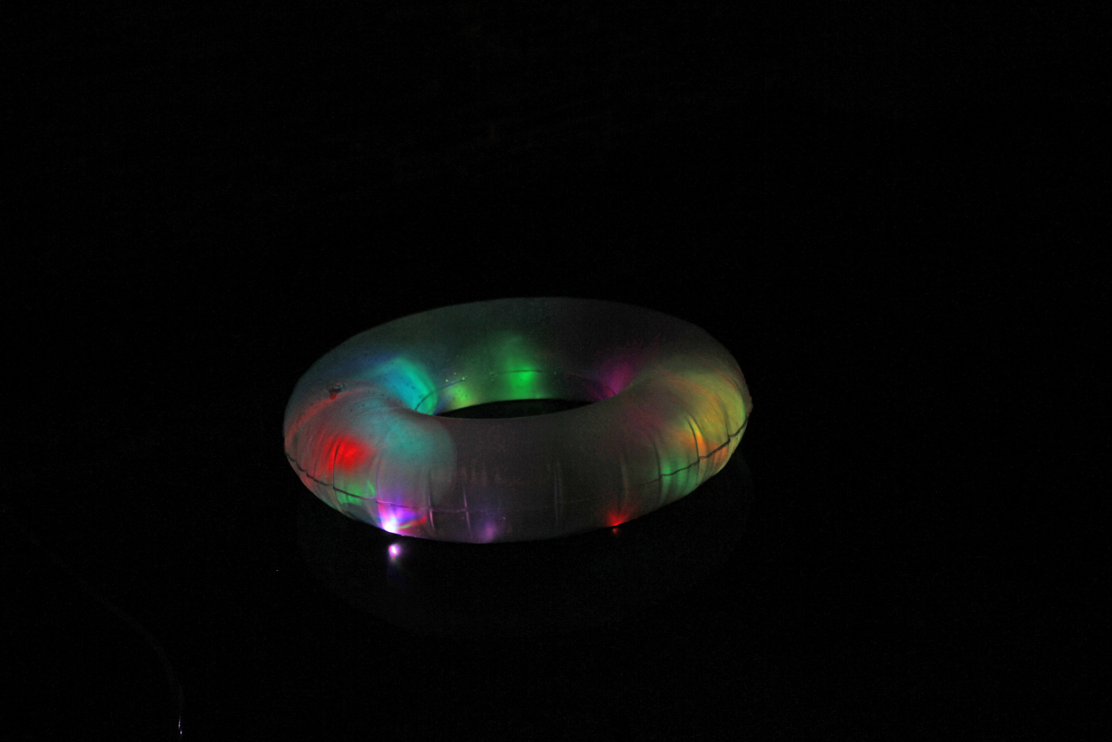 The outer is made from heavy duty vinyl in frosted white. In side there is multicoloured LEDs