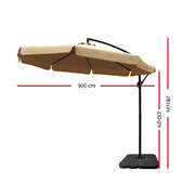 Instahut 3M Umbrella with 50x50cm Base Outdoor Umbrellas Cantilever Patio Sun Beach UV Beige