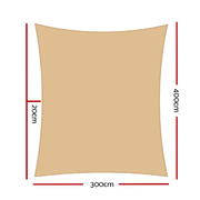 Shade Sail 3X4M Rectangle 280Gsm 98% Sand Shade Cloth