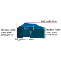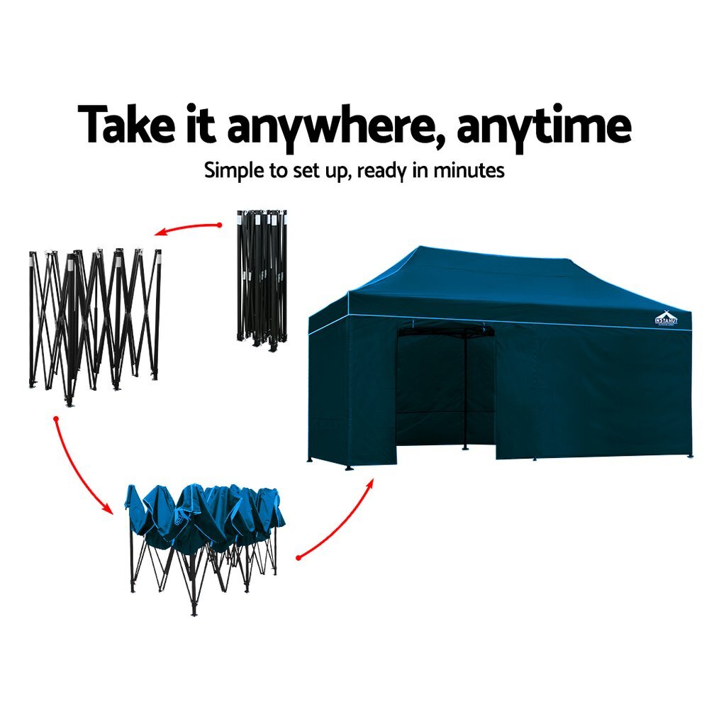 Instahut Outdoor Pop Up Gazebo 3x6m Wedding Marquee Tent Wall Gazebos Sailor Blue