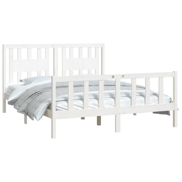 Elegance in Ivory: Queen Size Solid Wood Pine Bed Frame with Headboard