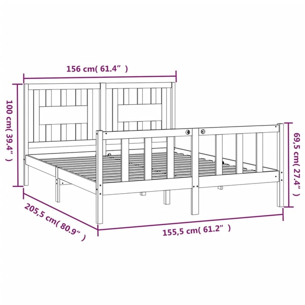 - Dimensions of bed frame: 205.5 x 155.5 x 69.5 cm (L x W x H)