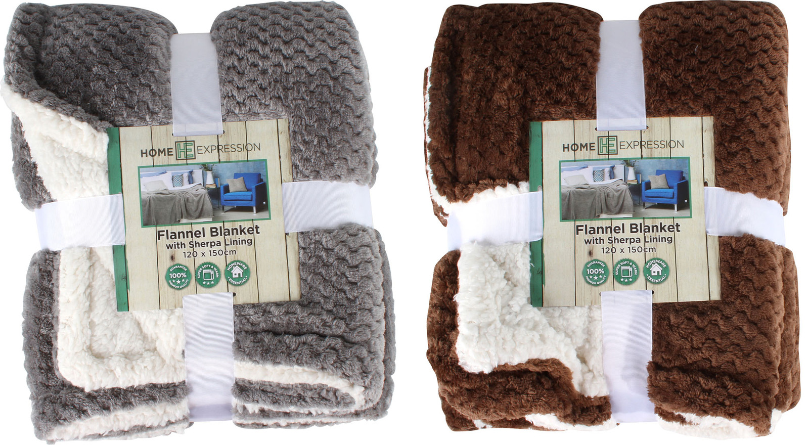 Jacquard Flannel And Sherpa Lined Blanket 120X150Cm 2Asstd