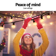 You will find our Jingle Jollys Festoon Lights is such a wonderful piece for the Christmas decoration. The remaining cool and most weather resisted 50 ultra-bright LED bulbs have a working lifespan of up to 25,000 hours, both perfect for indoor and outdoor use, such as Christmas decorations, birthday parties, and wedding celebrations. These lights will impress your guests with 8 lighting effections also the momory hold function. The icicle light will mark down the flashing sequence set-up even after power off. Come and get yours!