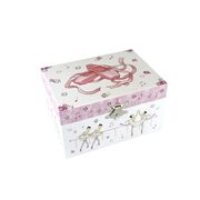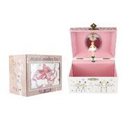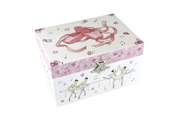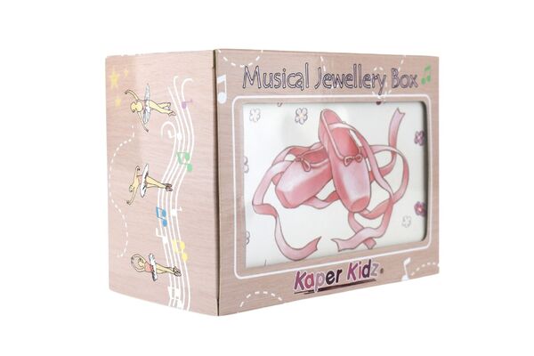 Children will love this magical musical jewellery box from Kaper Kidz. It is sure to put a smile on their faces when they open the lid as they watch the ballerina twirl to the music playing within. Each jewellery box is covered in beautifully illustrated pictures of dancers, ballerinas and more so you can proudly display this jewellery box on any shelf or table. On the back of each box is a small handle that can be wound up to play the music hidden within the jewellery box. The music will only play once the lid is opened and the figurine will spin along to its tune. Each box has been flocked inside with soft velvet fabric, to keep precious things safe. Behind the spinning figurine, a mirror features to show off the figurine as it spins. This music box plays to the tune Blue Danube . Each musical Jewellery Box from Kaper Kidz is designed as a decorative object for sorting, storing and displaying precious items.