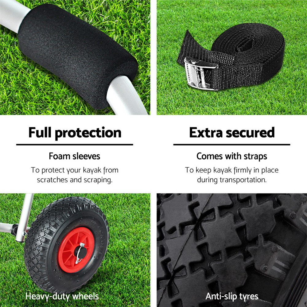 Kayak Trolley Canoe Aluminium Collapsible Wheel Cart Boat Carrier Ski 100KG