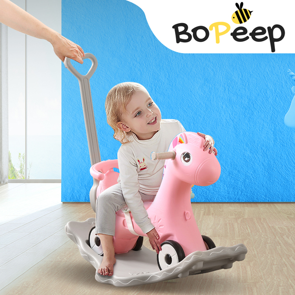Our BoPeep 4-in-1 Rocking Horse can exercise your child's motor coordination ability, and fully exercise the balance of the limbs through hand grasping, ankle and body shake to help the child grow up healthily. This rocking rider can also be converted to roller without any tools. Designed with a cute bear which can tell stories and play musics that can focus baby attention, improve baby Innovation, enlighten baby wisdom. This rocking rider will make for a fantastic birthday present or seasonal gift.