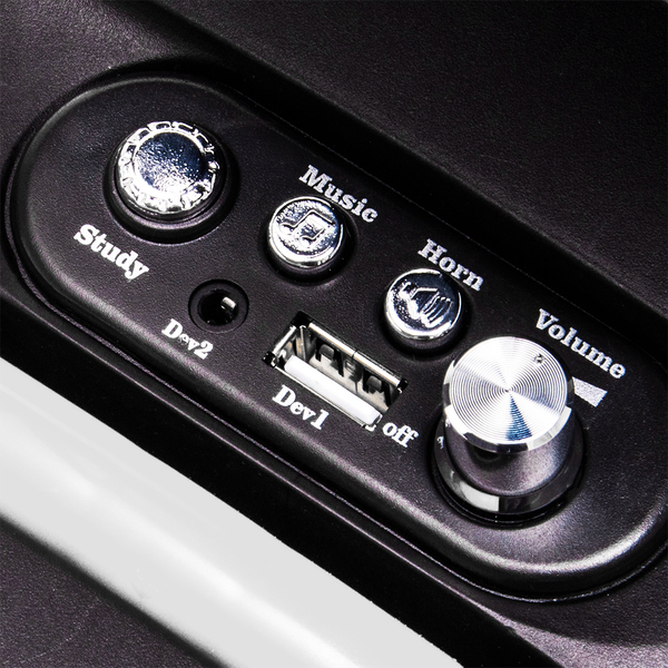 Play some lively tunes with your electric ride on car. Play from a selection of songs or insert a USB stick with a collection of music. Charge along on your 25W motor.