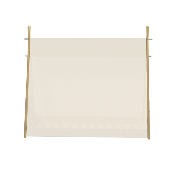 The bed frame's teepee-inspired design adds a touch of enchantment to your child's room. Its playful appearance sparks creativity and encourages imaginative play, making bedtime a delightful adventure. Crafted with safety in mind, this bed frame is built with a sturdy and durable pine wood, ensuring it can withstand the energy of active kids. The wooden frame provides reliable support, and the linen roof is securely attached, guaranteeing a safe sleeping environment.