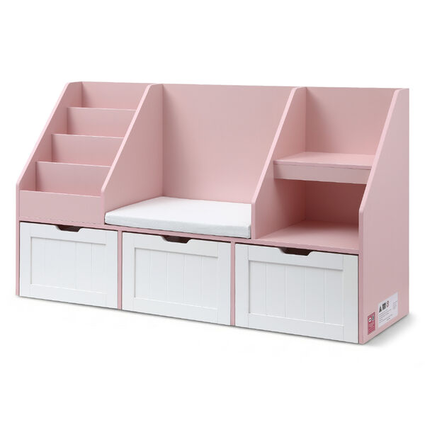 Kids Bookshelf Storage Organiser Toy Box Drawer Bench Cabinet Pink