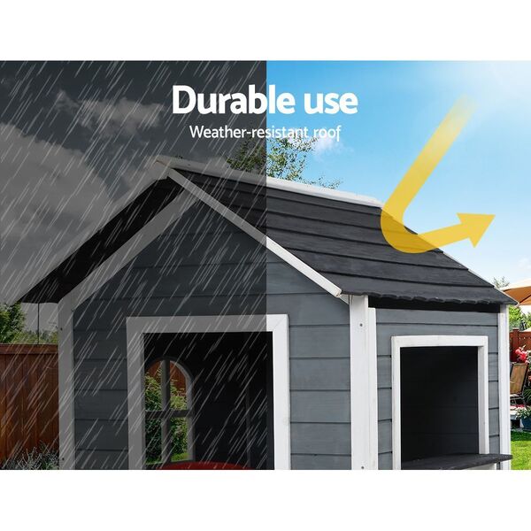Home sweet home. And for your kids, it definitely is with our Keezi Wooden Cubby House. Built from sturdy Fir wood, this cottage playhouse is a great way for kids to learn about practical life and social skills. Besides all the fun of house pretend play, kids can also use it as their own little cubby place to develop friendships or work on creative projects. Everything about the playhouse is made child-safe: oversized window gaps, fastening brackets and nails, glass-free design and painted with eco-friendly, non-toxic paint. The entire house is durable and weather-resistant and includes a charming Dutch-style half door and a spacious white bench outside the cubby. Not least, the cubby house looks great in your garden as well as allowing more backyard escapades for your kids.