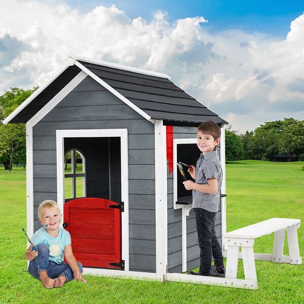 Kids Cubby House Outdoor Pretend Play Bench Wooden Playhouse Childrens