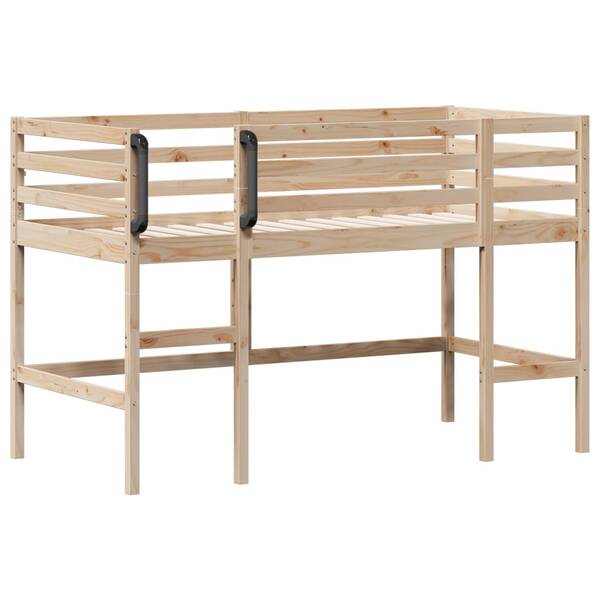 This kids' loft bed has been crafted from solid pine wood and is designed for entertaining as well as optimising space. Stable and long-lasting frame: Solid pinewood is known for its strength and durability. Its straight grains and distinctive knots contribute to its rustic charm.Slatted base for optimal support: The bed frame is equipped with a slatted base for support and breathability for your mattress.Full use of space: This single loft bed provides ample space underneath for storage or other activities. This area can be used to stack storage boxes, store large toys, or even place a children's sofa for reading. Additionally, your child can use the space under the wooden bed frame as a secret base and enjoy imaginative play.Safety guardrails: The children's mid sleeper comes with safety guardrails on all 4 sides, so your child can sleep without worrying about falling off.Convenient ladder: This children's mid sleeper bed has a ladder that provides convenience for getting on and off the bed. It also brings joy and turns their room into an indoor playground. Good to know:A mattress is not included with this bed. We do offer a various selection of mattresses. You can check our shop for a matching mattress.