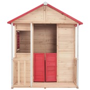 Our wooden play house will surely bring great enjoyment to your beloved little ones. You kids will definitely live it up with our play house! Our wooden playhouse is a dream place for your little ones, be it outside in the garden or indoors at home. Thanks to the window, the door, as well as the spacious interior with 155 cm height, the children play house invites your kids to play and run around and offers protection and security even in bad weather.