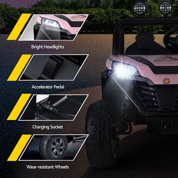Kids ride on car electric toys cars headlight music remote control pink